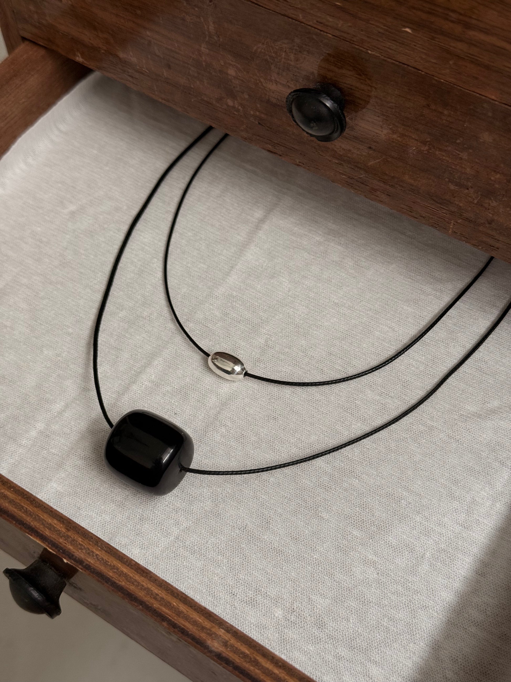Size: 13mm, 40cm black wax coated polyester cord
